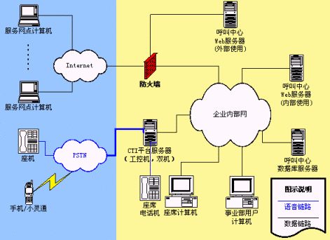 整個(gè)系統(tǒng)由呼叫中心平臺(tái)(接入層、支持層、實(shí)現(xiàn)層)與客戶服務(wù)平臺(tái)(行業(yè)應(yīng)用層)兩大部分組成。呼叫中心作為整個(gè)系統(tǒng)的接入平臺(tái),負(fù)責(zé)與客戶之間的交互工作。呼叫中心平臺(tái)需要處理的信息來(lái)源有:電話,傳真,信函,電子郵件。主要的工作有四個(gè)方面: