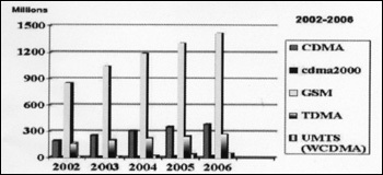 2001年12月全球數字移動用戶的技術比例