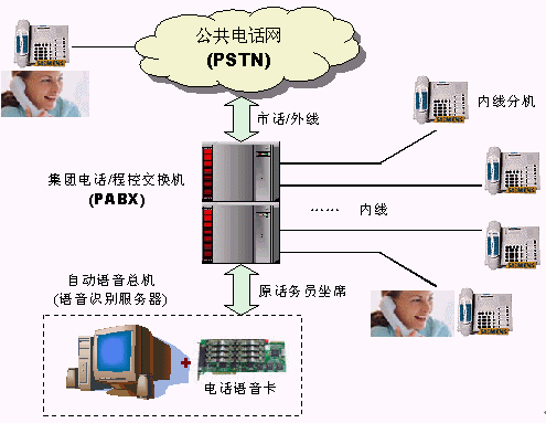 大中型機關(guān)、企事業(yè)單位通常都會配備用戶交換機或者集團電話。目前企業(yè)級的PBX在進行電話轉(zhuǎn)接時,通常都是由接線員手工轉(zhuǎn)接或者播放自動語音提示,如"請撥分機號",然后根據(jù)用戶的按鍵碼轉(zhuǎn)接到特定的分機上。