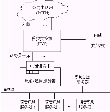 這是一個易擴展的系統(tǒng)結(jié)構(gòu)。當話務員坐席規(guī)模較大時,系統(tǒng)可增加多臺識別服務器并立即生效而不需進行特殊的配置,當話務員坐席規(guī)模較小時,上述各個"邏輯"的軟件服務器可運行在同一臺"物理"的機器上,從而在保證整體系統(tǒng)性能的前提下,降低硬件的成本。