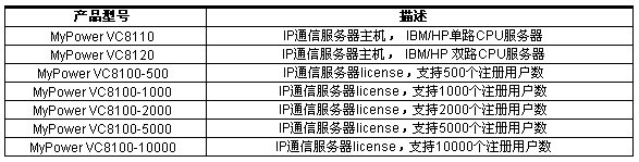 MyPower VC8100 IP通信服務(wù)器負(fù)責(zé)網(wǎng)關(guān)、IP電話機(jī)以及軟電話的注冊、號碼路由、增值業(yè)務(wù)提供等功能,基于MyPower VC8100的IP通信解決方案可以給用戶提供:IP語音通信、IP視頻通信、IP傳真通信;可以提供語音郵件、自動(dòng)總機(jī)、號碼攜帶、按名字呼叫、搜尋組等增值應(yīng)用;可以提供呼叫轉(zhuǎn)接、轉(zhuǎn)移、停泊、代答、保持等補(bǔ)充語音業(yè)務(wù)。