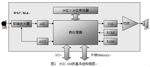 由美國Sensory Integrated Circuit公司開發(fā),2000年開始生產(chǎn),是一顆為消費類電子產(chǎn)品應用的低價位的語音識別專用芯片,其結構圖如圖2所示。