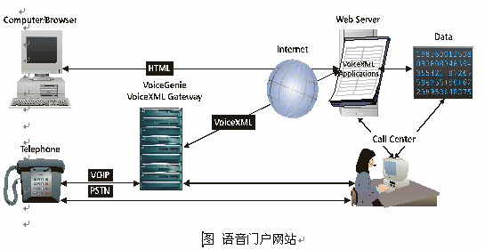VoiceSoft先進的技術可以將傳統(tǒng)的電力公司的網(wǎng)站改造為語音門戶網(wǎng)站,用戶既可以通過傳統(tǒng)的internet方式瀏覽電力公司網(wǎng)站,也可以通過電話撥入的方式獲得網(wǎng)站上的信息,使用網(wǎng)站上的功能,利用ASP的技術,實現(xiàn)語音服務數(shù)據(jù)和網(wǎng)上瀏覽數(shù)據(jù)同步更新。