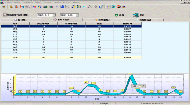 按時間統(tǒng)計 按照時間對來電以及計費(fèi)點(diǎn)進(jìn)行統(tǒng)計,并寫從下端的立體折線圖中看到所選的日期內(nèi)各個時間段的呼叫分布數(shù)。