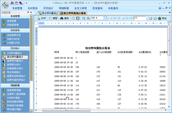 綜合呼叫量統(tǒng)計:可以根據(jù)“月份”、“天”、“小時”、“半小時”、“周”來統(tǒng)計綜合呼叫量。統(tǒng)計的指標(biāo)包括:呼入電話總數(shù)、進(jìn)入ACD電話總數(shù)、ACD應(yīng)答電話數(shù)、ACD通話時長、ACD放棄電話數(shù)、軟電話呼出電話數(shù)、軟電話呼出時長、排隊接通率。