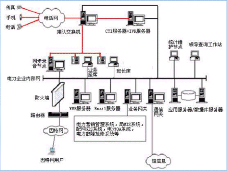 。。用戶(hù)利用電話(huà)、傳真、電子郵件、因特網(wǎng)、手機(jī)、網(wǎng)絡(luò)電話(huà)等撥打某一特服號(hào)碼(如95598)進(jìn)入電力多媒體客戶(hù)服務(wù)中心系統(tǒng),本系統(tǒng)依托電力企業(yè)各類(lèi)業(yè)務(wù)技術(shù)支持系統(tǒng),通過(guò)人工受理或自動(dòng)語(yǔ)音服務(wù)等方式為各類(lèi)客戶(hù)提供全天24小時(shí)不間斷的電力服務(wù);形成了對(duì)外服務(wù)于用戶(hù)的無(wú)形窗口,對(duì)內(nèi)管理、分析、決策系統(tǒng)相結(jié)合的新型客戶(hù)服務(wù)中心。