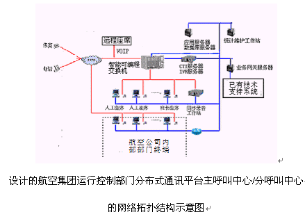 2為了充分保障整個(gè)航空集團(tuán)運(yùn)行控制部門(mén)分布式通訊平臺(tái)的穩(wěn)定性和高可靠性以及良好的性能價(jià)格比,建議采用以下的分布式呼叫中心(客戶服務(wù)中心)的建設(shè)方案,可以減少企業(yè)投資,同時(shí)具有良好的系統(tǒng)性能。