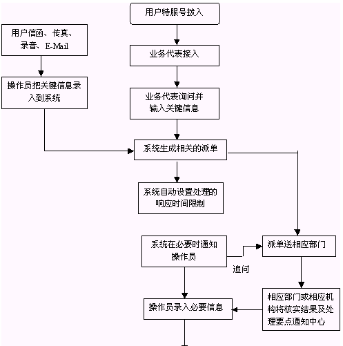 人民群眾打入電話后,當(dāng)系統(tǒng)的自動(dòng)語音應(yīng)答子系統(tǒng)無法解決客戶問題時(shí),客戶可選擇人工服務(wù),由企業(yè)客戶服務(wù)代表直接接聽客戶電話,處理并解決客戶問題。此時(shí)客戶同座席話務(wù)人員直接溝通,并同時(shí)記錄下該客戶的聯(lián)系方式,將相關(guān)數(shù)據(jù)添加入系統(tǒng)數(shù)據(jù)庫;也可以在數(shù)據(jù)庫的支持下回答質(zhì)量監(jiān)督咨詢、投訴等?蛻粢部梢赃x擇自動(dòng)語音服務(wù)方式,根據(jù)系統(tǒng)的語音提示輸入按鍵,選擇類別,將自己的投訴和建議以及自己的聯(lián)系方式信息以留言錄音的方式保存在系統(tǒng)中。系統(tǒng)同時(shí)還支持自動(dòng)傳真方式,客戶可以通過傳真機(jī)進(jìn)入本系統(tǒng),通過按鍵選擇傳真方式,將自己的意見建議等的文本內(nèi)容傳真給系統(tǒng),系統(tǒng)自動(dòng)接受并存入數(shù)據(jù)庫。