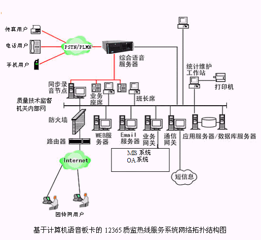 基于計(jì)算機(jī)語音板卡的12365質(zhì)監(jiān)熱線服務(wù)系統(tǒng)網(wǎng)絡(luò)拓?fù)浣Y(jié)構(gòu)圖