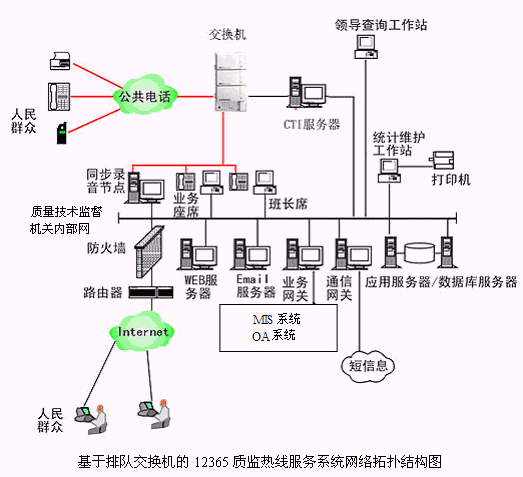 基于排隊(duì)交換機(jī)的12365質(zhì)監(jiān)熱線服務(wù)系統(tǒng)網(wǎng)絡(luò)拓?fù)浣Y(jié)構(gòu)圖