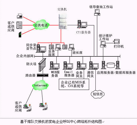 對(duì)于大中型的家電企業(yè)呼叫中心系統(tǒng),可選用排隊(duì)交換機(jī)作為語(yǔ)音接入設(shè)備,保障系統(tǒng)的高可靠性和穩(wěn)定性;
