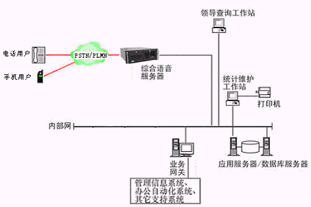 該員工工資自動語音查詢系統(tǒng)主要是由具有排隊(duì)功能的帶語音板卡的工控機(jī)、CTI服務(wù)器、IVR(交互式語音應(yīng)答)子系統(tǒng)、應(yīng)用服務(wù)器/數(shù)據(jù)庫服務(wù)器、業(yè)務(wù)網(wǎng)關(guān)子系統(tǒng)(可選)等硬件設(shè)備和應(yīng)用軟件組成。整個呼叫中心系統(tǒng)的總體設(shè)計(jì)方案遵循模塊化的的設(shè)計(jì)思想。