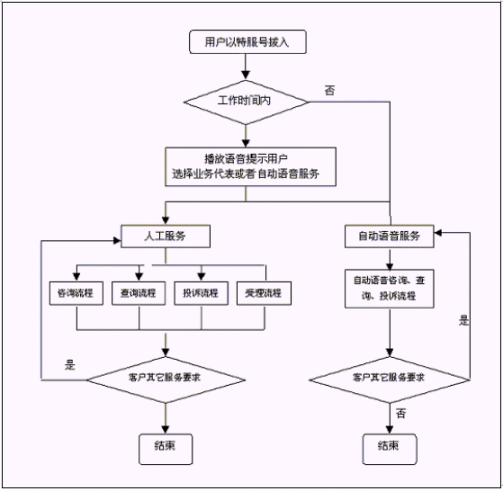 | 支持多種呼入方式 | 普通電話呼入、消息(e-mail、語音留言、傳真)呼入、Internet呼入。 |