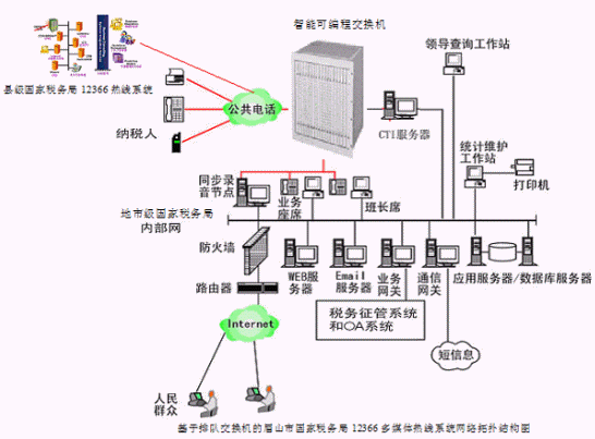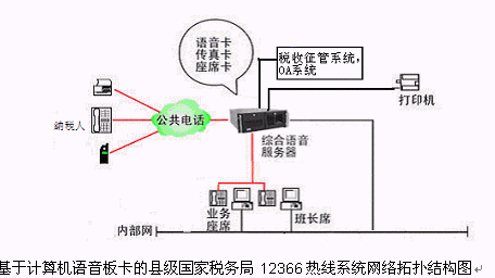 對(duì)于縣級(jí)國(guó)家稅務(wù)局12366多媒體納稅服務(wù)熱線系統(tǒng),則建議使用基于計(jì)算機(jī)語音板卡的方式,可以減少投資,同時(shí)具有良好的系統(tǒng)性能;對(duì)于地市級(jí)-縣級(jí)國(guó)家稅務(wù)局12366多媒體納稅服務(wù)熱線系統(tǒng),可選用排隊(duì)交換機(jī)作為語音接入設(shè)備,以保障系統(tǒng)的高可靠性和穩(wěn)定性;大大提高了系統(tǒng)的適應(yīng)面。