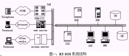 SAE完成接入服務(wù)器(Access Server)和RT-SOS后臺的通訊, 為每種接入方式設(shè)計接口程序, 實現(xiàn)了RT-SOS后臺業(yè)務(wù)處理與前臺接入方式無關(guān)。這里的接入服務(wù)器指網(wǎng)站服務(wù)器(IIS、Apache)、短信中心(SMS或者短信網(wǎng)關(guān))、程控交換機(jī)(或者CTI設(shè)備)等等。