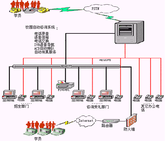 學(xué)員利用電話方式,可方便快捷的查詢教育培訓(xùn)機構(gòu)的介紹、開設(shè)課程情況介紹、教學(xué)地點情況介紹等信息。系統(tǒng)還可預(yù)置相關(guān)介紹內(nèi)容的傳真件,供學(xué)員按需自助索取。