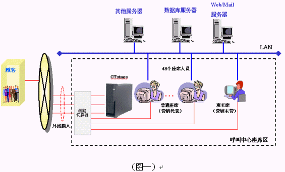 從經(jīng)濟效益上看,一方面,該系統(tǒng)通過呼叫中心整合市場與銷售兩個環(huán)節(jié)形成"互動營銷中心"很好地解決了綜合型企業(yè)中常見的市場與銷售不同步問題,并直接將企業(yè)內(nèi)外部通信進行融合,將有效促進企業(yè)的發(fā)展;另一方面,CTstage強大的統(tǒng)計分析功能和豐富的客戶數(shù)據(jù)庫,使原本看不見摸不著的營銷結果變得可以衡量。平均每個電話帶來的銷售額是多少?這種營銷方式是否合理?哪個環(huán)節(jié)可以提高?企業(yè)可以根據(jù)呼叫中心提供的信息數(shù)據(jù),方便地識別這一切,并據(jù)此提升銷售業(yè)績。