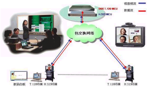 DSS系統(tǒng)可以和任何符合H.320/H.323標準的MCU配合,實現(xiàn)會議電視系統(tǒng)中的數(shù)據(jù)功能。