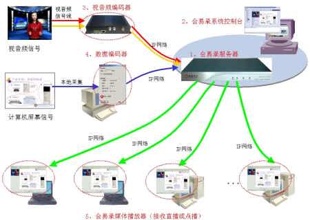 會(huì)易錄—銳取多媒體錄播系統(tǒng),是深圳市銳取軟件技術(shù)有限公司自主研發(fā)的最新一代的多媒體錄播系統(tǒng)。該系統(tǒng)基于IP網(wǎng)絡(luò),可以將會(huì)議中的視頻、音頻信號和計(jì)算機(jī)動(dòng)態(tài)屏幕信號進(jìn)行一體化的同步錄制、直播和點(diǎn)播。相對于傳統(tǒng)的視音頻錄播產(chǎn)品,會(huì)易錄在視音頻錄播的基礎(chǔ)上,創(chuàng)新地增加了對計(jì)算機(jī)動(dòng)態(tài)屏幕信號的錄制直播點(diǎn)播功能,該功能對于全面記錄會(huì)議、教學(xué)、培訓(xùn)的實(shí)況提供了極大地方便,尤其適合配合具有雙流或T.120數(shù)據(jù)會(huì)議功能的視頻會(huì)議系統(tǒng)使用,可廣泛地用于視頻會(huì)議室、高檔會(huì)議室,多功能會(huì)議廳,報(bào)告廳等多種會(huì)議場合,非常適合政府、學(xué)校、企業(yè)等用戶使用。