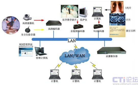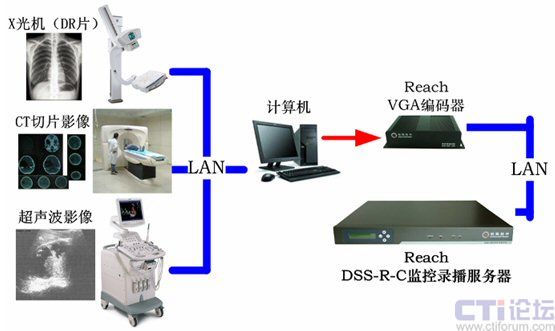 - 由于當(dāng)前的大多醫(yī)療設(shè)備,如X光機(jī)、CT機(jī)均擁有網(wǎng)絡(luò)接口并支持,由計(jì)算機(jī)通過網(wǎng)絡(luò)即可采集醫(yī)療設(shè)備中的影像,并采用VGA編碼器采集計(jì)算機(jī)中的CR或DR片、CT片、演示文件(PPT、WORD、EXCEL);