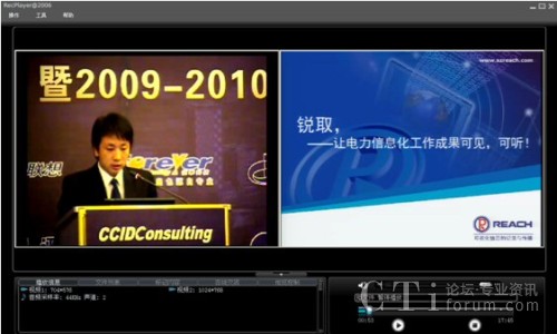 本次論壇分為電力企業(yè)信息化高峰論壇、電力企業(yè)“十二五”信息化藍圖展望、電力信息化標(biāo)桿研究及評選結(jié)果發(fā)布、研討國際電力信息化標(biāo)桿發(fā)展方向、研討“智能”落地打造中國智能特色五大議題。深圳銳取受主辦方委托為論壇提供全程錄播服務(wù)。相比傳統(tǒng)攝像機記錄會議的方式,銳取多媒體錄播系統(tǒng)實現(xiàn)了會議現(xiàn)場視頻與講演者PPT同步完整記錄,新穎的記錄方式受到了主辦單位和與會者的好評。
