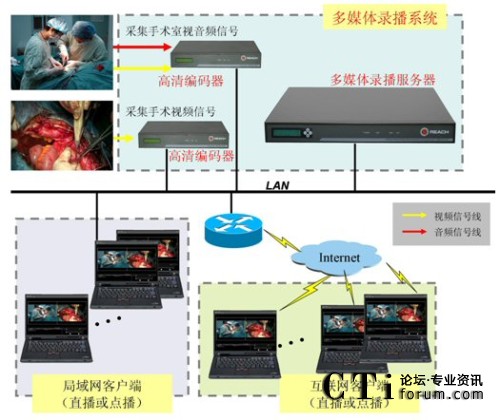 廣州醫(yī)學(xué)院附屬腫瘤醫(yī)院使用銳取高清手術(shù)示教系統(tǒng)用于日常手術(shù)示教。銳取高清手術(shù)示教系統(tǒng)采集手術(shù)室內(nèi)拍攝手術(shù)的高清攝像機信號(支持1080P、1080I、720P),將采集的信號編碼后錄制并實時網(wǎng)絡(luò)直播。通過銳取高清手術(shù)示教系統(tǒng),醫(yī)生、專家、學(xué)生不需要到手術(shù)現(xiàn)場,通過網(wǎng)絡(luò)就能觀看到手術(shù)的全程直播以及事后點播。