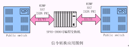 tyyy因為信令標準不同,部分國外通信設備無法與國內通訊網互通互連,SPAS-2000可編程交換機接口豐富,支持信令標準全面,成本低廉,可以實現(xiàn)R2MF、SS7、ISDN PRA、CAS、接入網V5信令等標準之間的轉換。當輸入和輸出的中繼接口不同時,其語音編碼可能不同,可利用多功能信號音板實現(xiàn)語音編碼的轉換。例如可以實現(xiàn)E1 A LAW和T1 U LAW之間的語音互轉。