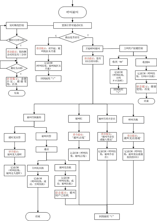 當(dāng)客戶的余額不足一分鐘時(shí),系統(tǒng)報(bào)提示音和催掛音并自動(dòng)釋放電話鏈路。 |