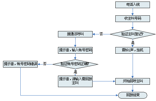 對(duì)接入系統(tǒng)的電話均進(jìn)行主叫識(shí)別,如果主叫沒有注冊(cè),系統(tǒng)語音提示后,主動(dòng)釋放電話 |