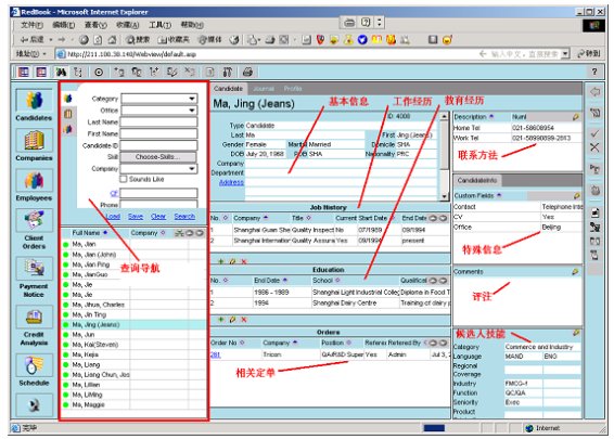 融博獵頭業(yè)務(wù)管理系統(tǒng)已經(jīng)被某著名的獵頭公司正式上線,該系統(tǒng)同時在北京、上海和香港公司使用。根椐使用客戶反映,該系統(tǒng)功能強(qiáng)大、操作靈活、速度快,基本覆蓋了獵頭業(yè)務(wù)的全部內(nèi)容;各種業(yè)務(wù)流程規(guī)范流暢、各類統(tǒng)計(jì)報(bào)表清晰準(zhǔn)確,大大地提高了工作效率;該系統(tǒng)與目前國際先進(jìn)的獵頭公司所使用的系統(tǒng)相比,也處于比較領(lǐng)先的水平。下面將對產(chǎn)品的特點(diǎn)及相關(guān)的功能模塊進(jìn)行描述。