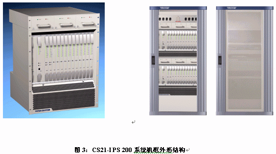 CS21-IPS 100結(jié)構(gòu)更緊湊,按照19英寸機(jī)柜標(biāo)準(zhǔn)設(shè)計(jì),支持七號(hào)信令處理和基本的交換功能。硬件系統(tǒng)由單個(gè)機(jī)框組成,有較高的性價(jià)比,作為移動(dòng)交換機(jī)的警用接口和七號(hào)信令監(jiān)控系統(tǒng)有較廣泛的應(yīng)用,也可以做為中小容量的綜合可編程交換平臺(tái)應(yīng)用。