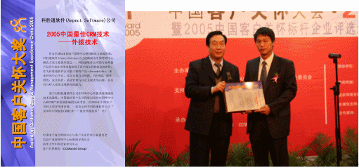 CALL CENTER & CRM ASSOCIATION)頒發(fā)的"2005年中國最佳CRM技術(shù)--最佳外撥技術(shù)獎(jiǎng)"。