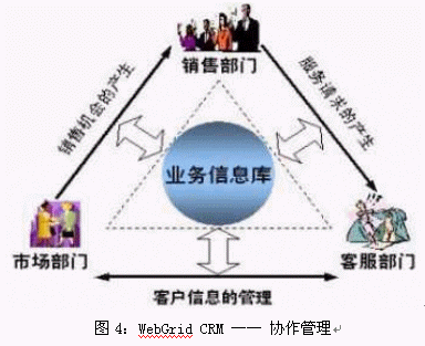 企業(yè)的銷售、服務(wù)和市場業(yè)務(wù)有一個共同的特點(diǎn),就是都與客戶打交道,都是以"客戶為中心"開展業(yè)務(wù)的。面對共同的客戶,需要共享相同的客戶信息。與此同時,各部門的業(yè)務(wù)也不是孤立的,而是在互動的過程中相互促進(jìn),共同提升。WebGrid CRM系統(tǒng)根據(jù)CRM理念而設(shè)計(jì),將銷售、市場和服務(wù)業(yè)務(wù)進(jìn)行整合,提供了統(tǒng)一的操作平臺,實(shí)現(xiàn)了業(yè)務(wù)信息的共享。此外,WebGrid CRM制定了靈活的工作流程,實(shí)現(xiàn)了各個業(yè)務(wù)部門之間的信息交互:由市場活動可以生成銷售機(jī)會;服務(wù)過程中的銷售意向也可以通過反饋提交到銷售部門中去……WebGrid CRM的這一功能消除了市場、銷售和服務(wù)各部門之間的信息孤島,將三個部門緊密結(jié)合,形成一個有機(jī)的整體,從而提升了企業(yè)整體的運(yùn)營效率。