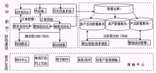 在企業(yè)中對于客戶關(guān)系資源管理方面可歸納為兩個方面的問題。其一,企業(yè)的銷售、營銷和客戶服務(wù)部門難以獲得所需的客戶互動信息。其次,來自銷售、客戶服務(wù)、市場、制造、庫存等部門的信息分散在企業(yè)內(nèi),這些零散的信息使得無法對客戶有全面的了解,各部門難以在統(tǒng)一的信息的基礎(chǔ)上面對客戶。這需要各部門對面向客戶的各項(xiàng)信息和活動進(jìn)行集成,組建一個以客戶為中心的企業(yè),實(shí)現(xiàn)對面向客戶的活動的全面管理。