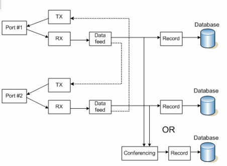 上圖中的媒體和控制數(shù)據(jù)流表示通過Prosody S (HMP) 或Prosody X板卡建立的兩個(gè)(或多個(gè))端點(diǎn)之間的呼叫。媒體流(RTP)和信令信息都通過監(jiān)控平臺(tái)本身傳輸,高級(jí)的應(yīng)用系統(tǒng)會(huì)記錄所有SIP/H.323事件和消息。傳真信息也可以存儲(chǔ),保存在TiFF格式的圖形文件內(nèi)。這里,系統(tǒng)可以在兩端分別錄制RTP流,也可以采用會(huì)議的方式錄制在一起。