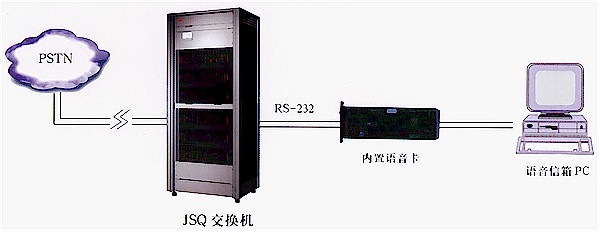 JSQ交換機(jī)計費系統(tǒng)由JSQ交換機(jī)內(nèi)置的留言信箱接口板和通過串行口相連的PC機(jī)組成。系統(tǒng)采用兩條標(biāo)準(zhǔn)PC串口,不另外增加硬件,確保了系統(tǒng)運行可靠。JSQ交換機(jī)語音信箱系統(tǒng)由一條串口提供經(jīng)過壓縮的數(shù)字語音通道,以確保優(yōu)質(zhì)傳輸和有效利用硬盤空間,每7兆硬盤即可保存一小時的語音信息。另一條串口提供PC用戶的信息傳輸通道。