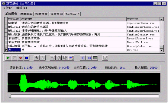 全程錄音監(jiān)聽子系統(tǒng)主要對整個呼叫服務(wù)過程提供全程數(shù)字錄音。采用數(shù)字化錄音技術(shù),當(dāng)話務(wù)人員摘機時,系統(tǒng)自動錄音,語音文件采用VOC文件格式,ADPCM編碼格式,數(shù)據(jù)壓縮比高。話務(wù)班長可隨時提取對話錄音,對服務(wù)質(zhì)量進行評估和監(jiān)督。