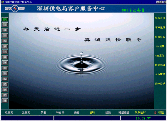 在座席的主畫面的右邊是業(yè)務(wù)功能選擇區(qū),是根據(jù)用戶實際工作的具體要求開發(fā)的。(隨后詳細介紹供電行業(yè)的業(yè)務(wù)功能模塊)