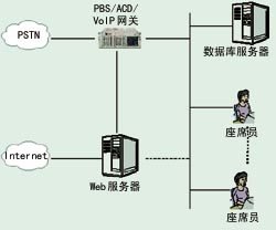在處理來自Web的語音呼叫時(shí),來電也必須與普通的語音來電一樣,經(jīng)過交換及排隊(duì)處理。將PBX、ACD、VoIP網(wǎng)關(guān)集成,使之既能處理來自Web的語音呼叫,也能處理來自PSTN的語音呼叫。