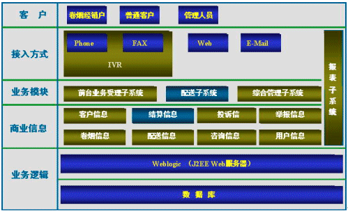 華泰貝通與南通珠峰電腦公司合作建設的南通煙草客戶服務中心系統(tǒng),覆蓋南通市和下屬六個縣市,實現(xiàn)了電話訪銷、電子結算、物流配送等業(yè)務功能,是煙草銷售業(yè)電子商務的典型案例,南通煙草在現(xiàn)有電子商務平臺基礎上,將進一步發(fā)展與完善系統(tǒng)功能,建立一個穩(wěn)定實用、數(shù)據(jù)高度共享、緊扣業(yè)務需求及調控能力強的高水平信息系統(tǒng),以成熟的客戶關系管理,實現(xiàn)優(yōu)質的個性化客戶服務;以完善的商業(yè)智能化系統(tǒng),提供敏捷高效的經營分析與決策支持;以科學的倉儲配送資源管理,實現(xiàn)物流效益的最大化。