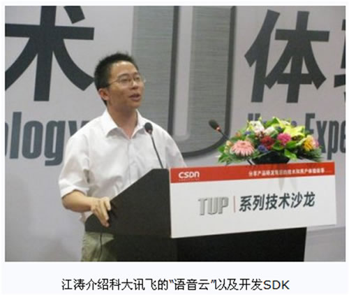7月16日下午,CSDN TUP第十二期“移動開發(fā)技術(shù)沙龍:次世代人機(jī)交互接口及應(yīng)用開發(fā)”在中國科學(xué)院計(jì)算技術(shù)研究所一層報(bào)告廳舉行。本次活動邀請了微軟亞洲工程院軟件工程師馬寧、神念科技大中華區(qū)總裁張彤和科大訊飛副總裁江濤,分別在Kinect應(yīng)用開發(fā)、腦際接口技術(shù)的應(yīng)用和語音輸入交互三個方面進(jìn)行了演講和互動,F(xiàn)場爆滿,氣氛熱烈。