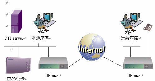 針對(duì)目前呼叫中心部署過(guò)程中對(duì)于IP遠(yuǎn)程座席的需求,北京佳訊飛鴻電氣有限責(zé)任公司推出了系列IPmux設(shè)備。 用戶只需將原有座席的電話線插到IPmux設(shè)備上,通過(guò)互聯(lián)網(wǎng),即可將該座席延伸到全球任意地點(diǎn)。