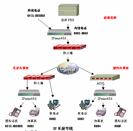 IP長途專線系統(tǒng),完全針對政府、企業(yè)等的駐外辦事機構(gòu)與總部之間的密切聯(lián)系而設(shè)計,使辦事處輕松擁有來自總部的長途電話專線,令溝通更加迅捷,而且完全免除長途話費的困擾,安裝和使用都極其簡單,無需對原有電話設(shè)備進行任何改造。