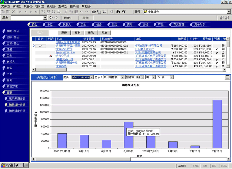 (1) 基于機(jī)會的"銷售分析統(tǒng)計(jì)圖表"