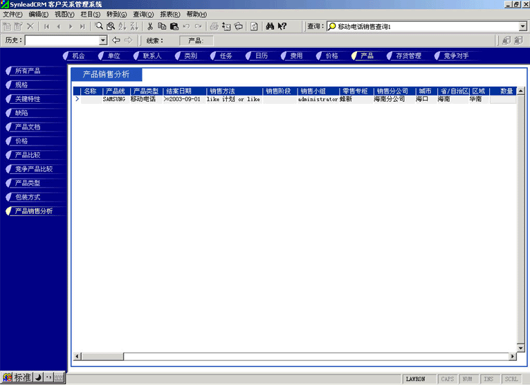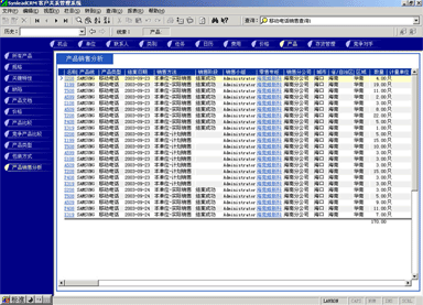 管理人員可能需要對比產(chǎn)品銷售計(jì)劃與實(shí)際銷售的產(chǎn)品數(shù)量的關(guān)系,也有可能要對比某款產(chǎn)品與競爭產(chǎn)品銷售的情況,這時候可以利用產(chǎn)品銷售統(tǒng)計(jì)功能。它最大的好處是各項(xiàng)目數(shù)據(jù)普遍關(guān)聯(lián),允許任意組合查詢條件(見圖4,點(diǎn)擊下圖,可彈出更清晰的大圖)