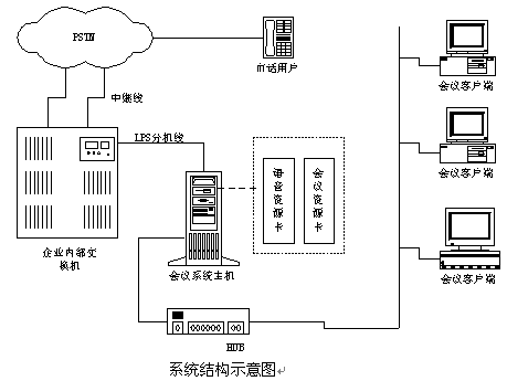 一般傳統(tǒng)電話會議的實(shí)現(xiàn)均利用企業(yè)內(nèi)部交換機(jī)(PBX)的多方通話功能(三方、四方或更多方),但有很大的局限性(如參加會議的人數(shù)有限,一般交換機(jī)不能超過8方,異地外線參加會議不方便、信號音相互干擾、模擬外線掛機(jī)不準(zhǔn)確,長期占用外線、操作煩瑣等),使用戶在使用過程中遇到很多不方便。目前還有一種遠(yuǎn)程會議系統(tǒng)是專用的可視電話會議系統(tǒng),這種系統(tǒng)可以將圖像與聲音同時傳送,使用戶有親臨會場的感覺,但是它要有專用的會議中心、專用的會議終端設(shè)備以及專用的信息傳輸線路,系統(tǒng)造價和使用費(fèi)用均相當(dāng)高,一般用戶難以承受。