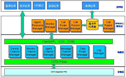 作為可拆卸的呼叫中心服務(wù)層,系統(tǒng)提供了業(yè)務(wù)系統(tǒng)以外的呼叫中心的全部功能。