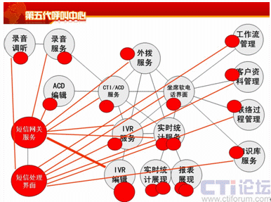 需要保存記錄的,需要做質(zhì)量管理的,大家需要把這個(gè)東西保存起來,以便于考核座席,這時(shí)候電話錄音的服務(wù)需要改動(dòng),座席質(zhì)量管理的界面需要改動(dòng),因?yàn)橐郧肮芾斫缑媸锹犱浺舻,現(xiàn)在是需要看文本了。接著客戶資料管理也是需要嗎?當(dāng)然需要了,來一個(gè)短信以后,盡量把客戶資料能夠屏幕彈出,降低我們的服務(wù)時(shí)間,需要改進(jìn)。知識(shí)庫(kù)需要改動(dòng)嗎?需要,因?yàn)槲野l(fā)短信的時(shí)候,不可能每個(gè)字都敲進(jìn)去,需要從知識(shí)庫(kù)把這個(gè)信息拽出來,這時(shí)候需要知識(shí)庫(kù)的服務(wù)。工作流,通過短信也要進(jìn)行一些業(yè)務(wù)的處理。聯(lián)絡(luò)過程也需要管理。這時(shí)候戰(zhàn)略出來了,經(jīng)營(yíng)者說了,我現(xiàn)在通過短信要做營(yíng)銷了,我要外撥了,和外撥服務(wù)連接出來,還有經(jīng)營(yíng)者的一些戰(zhàn)略,比如說對(duì)于一些比較高的客戶,優(yōu)先分配,降低等待時(shí)長(zhǎng)。那么這個(gè)戰(zhàn)略還包括這些產(chǎn)品生命周期的管理,需要不同的服務(wù)方式,一樣也要通過編輯,策略可以自行調(diào)整。