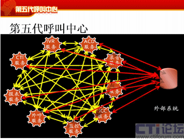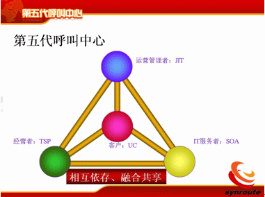 這幾方面相互制約,相互影響,相互關(guān)聯(lián),這是我們提的相互依存,融合共享,這是它的核心,這幾個(gè)方面相互作用。今天短暫的時(shí)間也只能講到IT服務(wù)者通過SOA在第五代呼叫中心如何支持其它方面的要求。