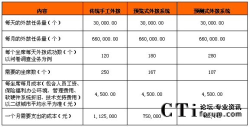 Hi-Dialer為不少呼叫中心企業(yè)帶來(lái)的前所未有的收益。我們可以進(jìn)行一個(gè)簡(jiǎn)單的實(shí)景測(cè)算,目前國(guó)內(nèi)典型的擁有預(yù)測(cè)式外呼的呼叫中心都有單純的呼入坐席,假設(shè)呼入坐席500席,預(yù)測(cè)式呼出坐席1000席,呼入和呼出坐席的呼叫中心系統(tǒng)分別獨(dú)立,如果是業(yè)務(wù)量飽和的狀態(tài)下,全部坐席是可以用的,但是在業(yè)務(wù)量不飽和的狀態(tài)下,想讓這1000坐席接聽(tīng)呼入電話,卻辦不到。這就形成了一個(gè)巨大的漩渦,將企業(yè)的軟硬件成本、場(chǎng)地租金和人力資源無(wú)情的吞噬掉了。新的勞動(dòng)法又規(guī)定企業(yè)不得隨意裁人,那么這時(shí)候企業(yè)就會(huì)非常頭疼。這是一個(gè)典型的重復(fù)建設(shè)項(xiàng)目。